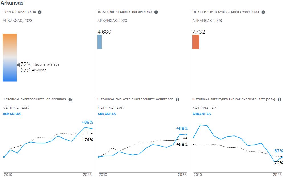 With a total of 4,680 current job openings in Arkansas, roughly 7,732 employees currently work in the cybersecurity field, according to Cyberseek.