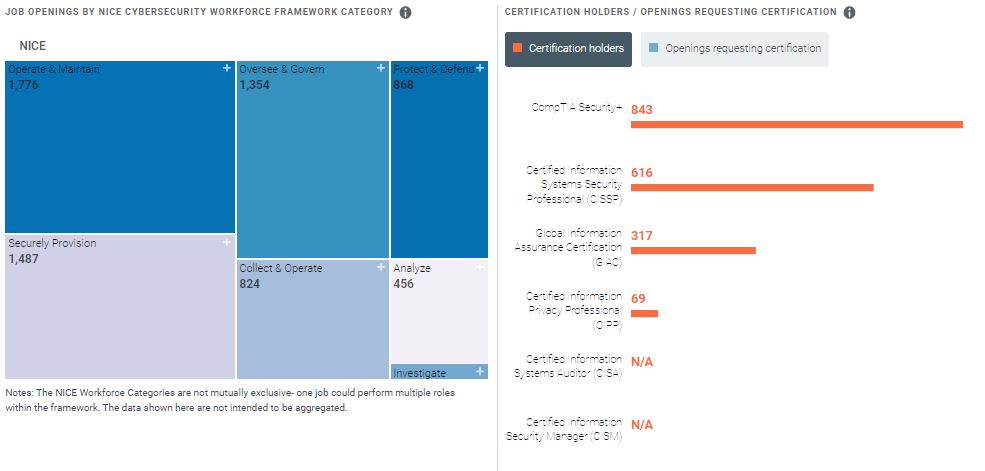 Between September 2022 through August 2023, there were 6,165 people employed in the cybersecurity workforce with up to 2,741 roles still waiting to be filled.