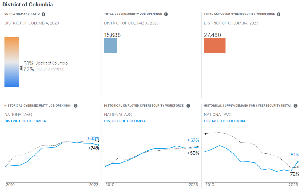 The District of Columbia is obviously very tiny in size. Because it isn’t a state and is so completely intertwined economically with surrounding cities, DC-specific cybersecurity data is not readily available.