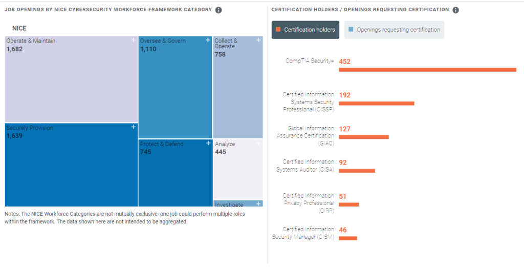CyberSeek states that there are a total of 4,801 currently employed in Maine with 2,512 job openings for cybersecurity-related positions.