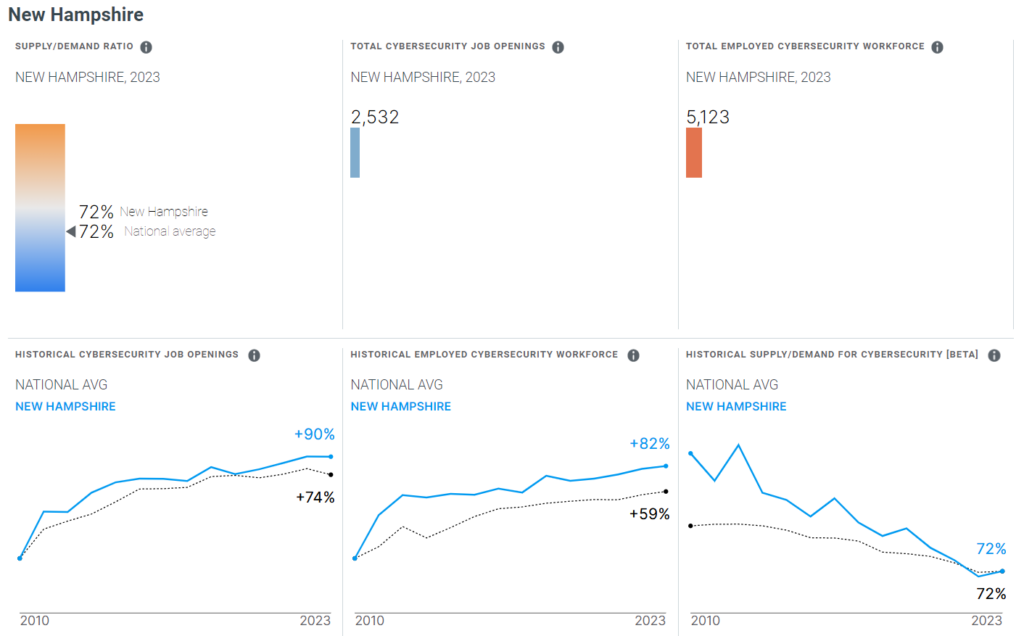 The economy of New Hampshire is fairly small, and so too is the size of the current cybersecurity workforce. But demand outweighs supply by an even wider margin than most other US states.