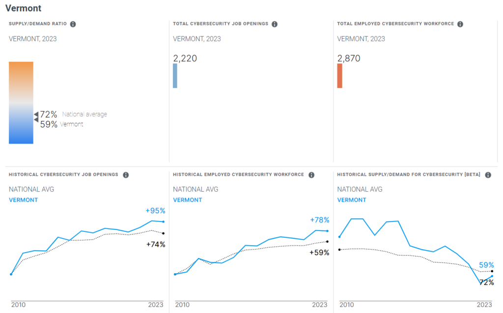 With a total of 2,220 job openings in Vermont, around 2,870 employees currently work in the cybersecurity field, according to Cyberseek.
